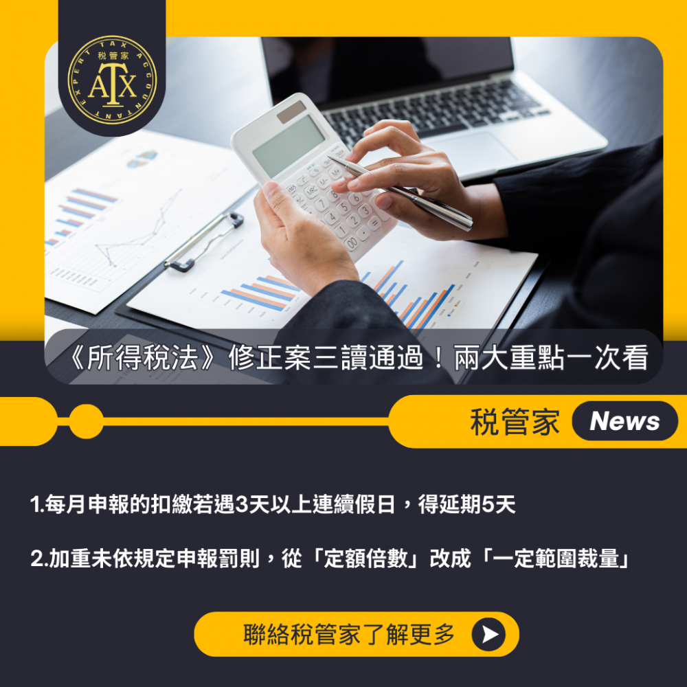 立法院三讀通過,所得稅法修正1.修正扣繳義務人範圍:扣繳義務人範圍,從給付所得的事業其負責人、機關或團體其責應扣繳單位主管等自然人,改為事業...